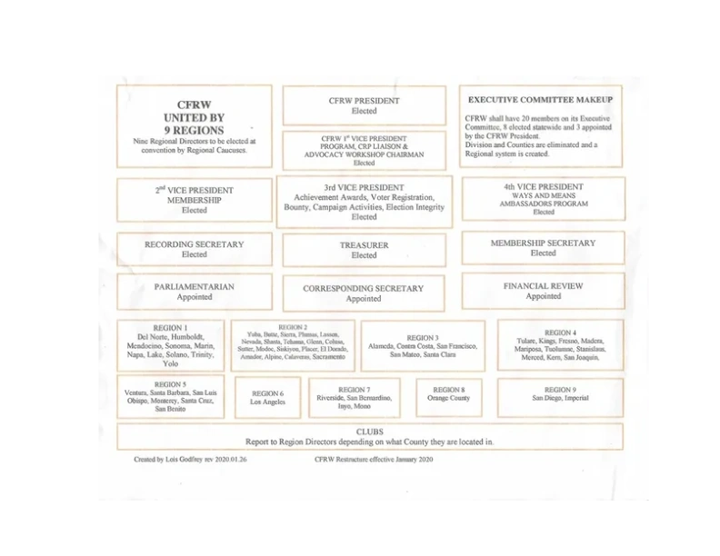 The Santa Rosa Republican Women Federated was chartered by the National Federation of Republican Women in 1945, making it eighty years old in 2025. The NFRW has clubs in all fifty states, and SRRWF is part of the California Federation of Republican Women, Region 1 (of nine). Our officers attend both national and regional conferences.